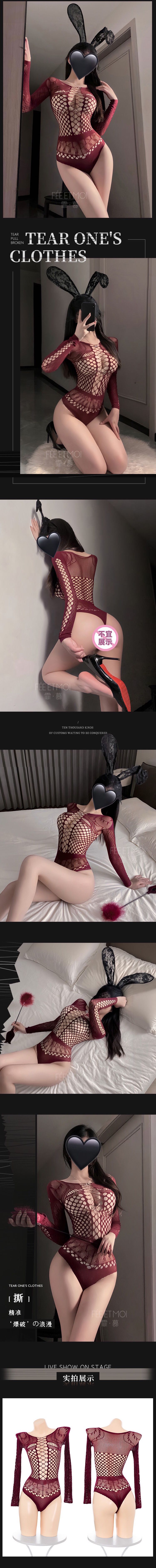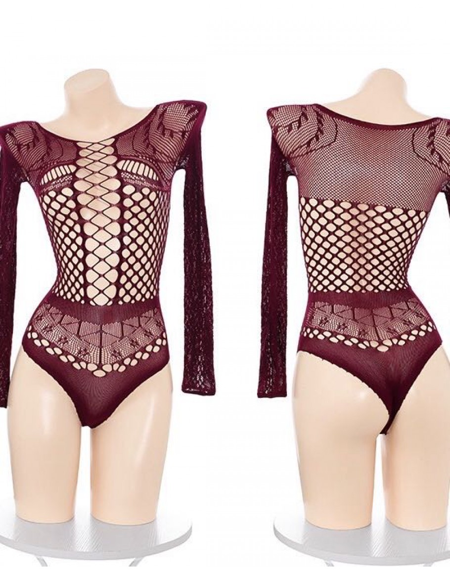 【Preorder】40kg-65kg Long-Sleeved Maroon Cut-Out Body-Suit