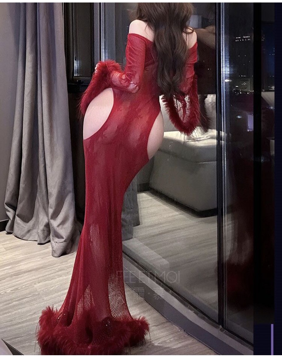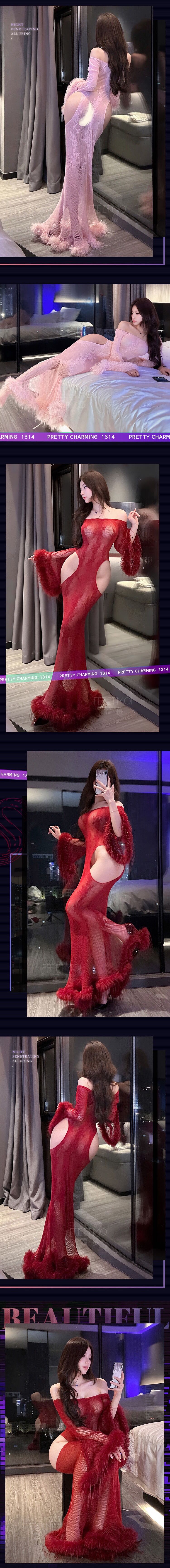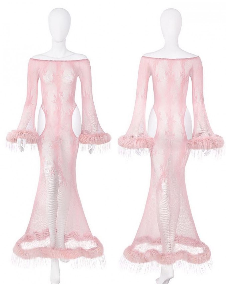 【Preorder】40kg-65kg Off-The-Shoulder Fishnet Long-Lone Dress