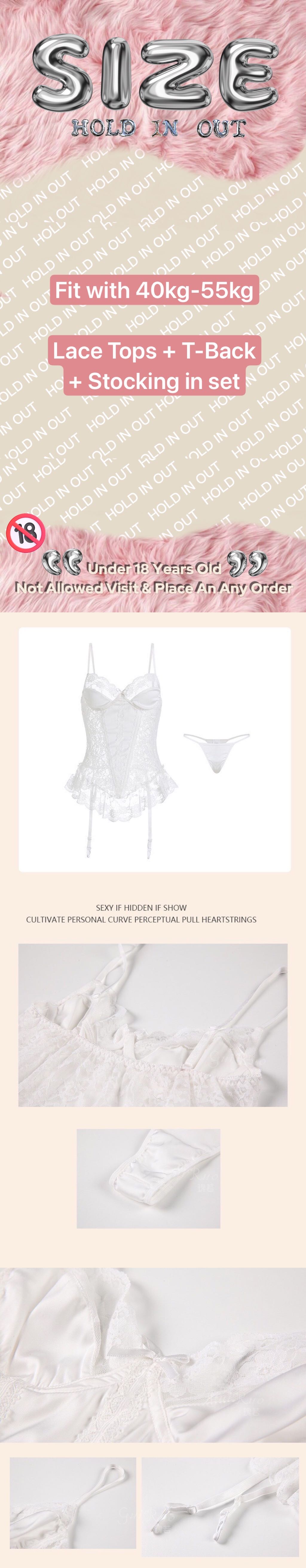【Preorder】40kg-55kg Lace Slim-Fit Tops +Stockings+ T-Back