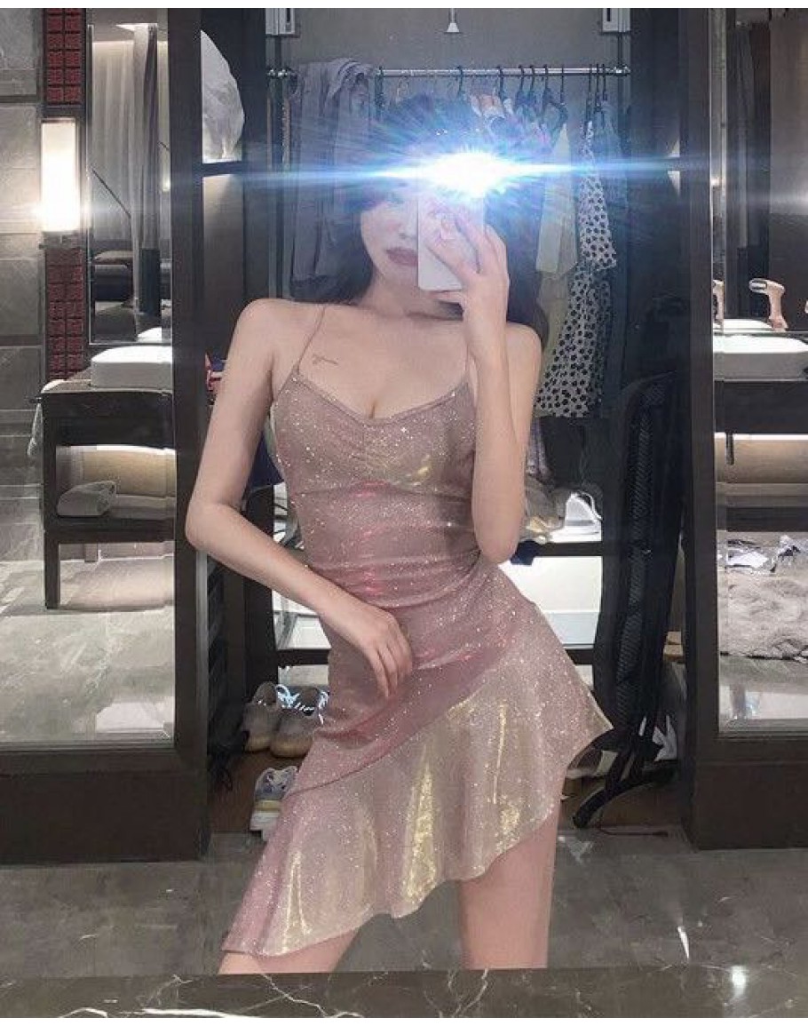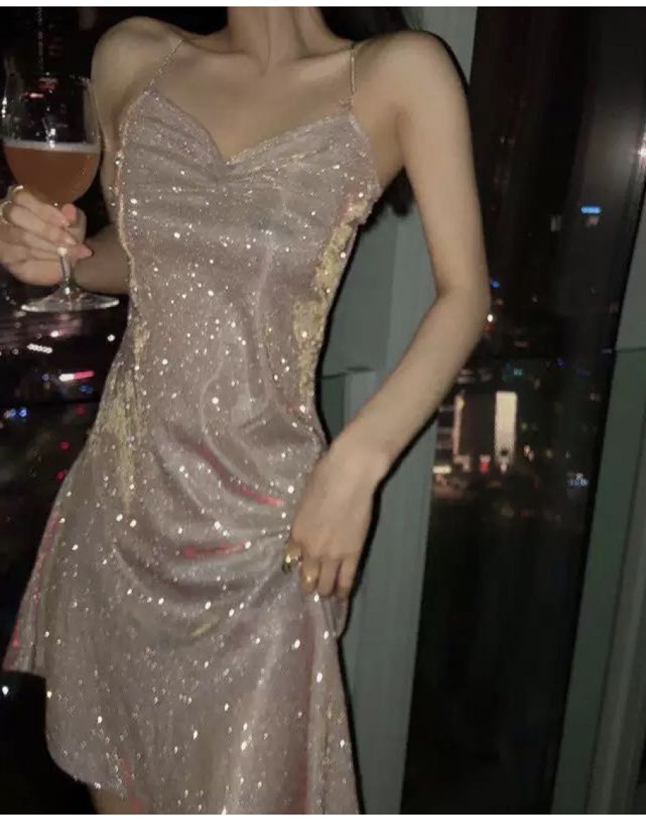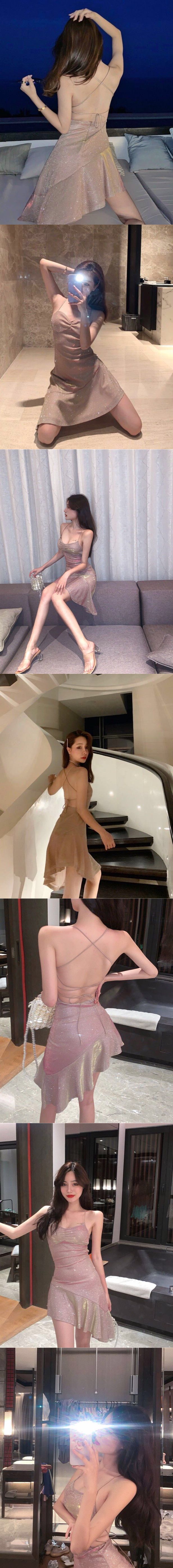 【Preorder】40kg-55kg Backless Pinky Galaxy Asymmetrical Dress
