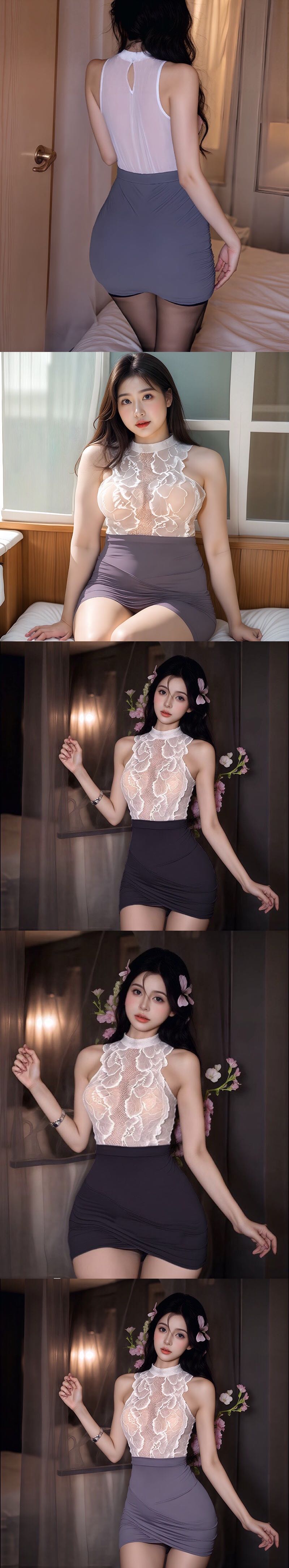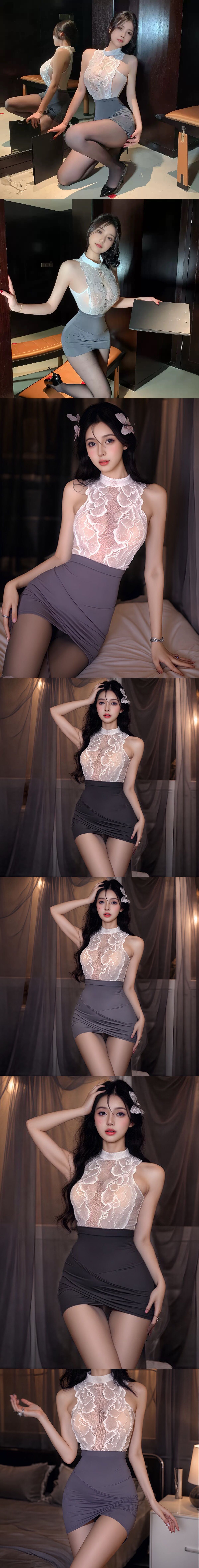 【Preorder】40kg-85kg Halter-Neck Lace Fitted Sexy Lingeries+ T-Back