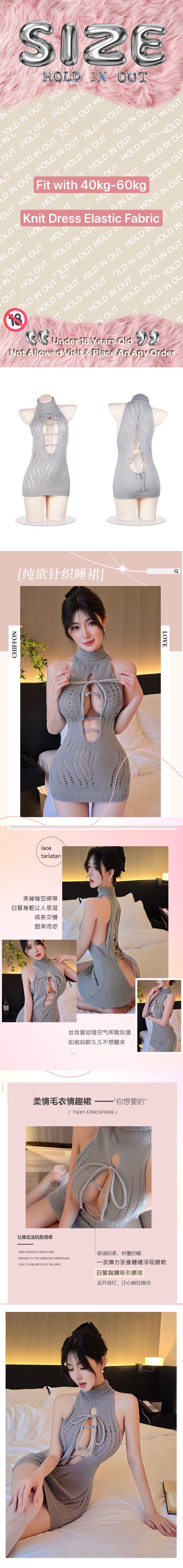 【Preorder】40kg-60kg Halter-Neck Lace-Up Knit Home Dress