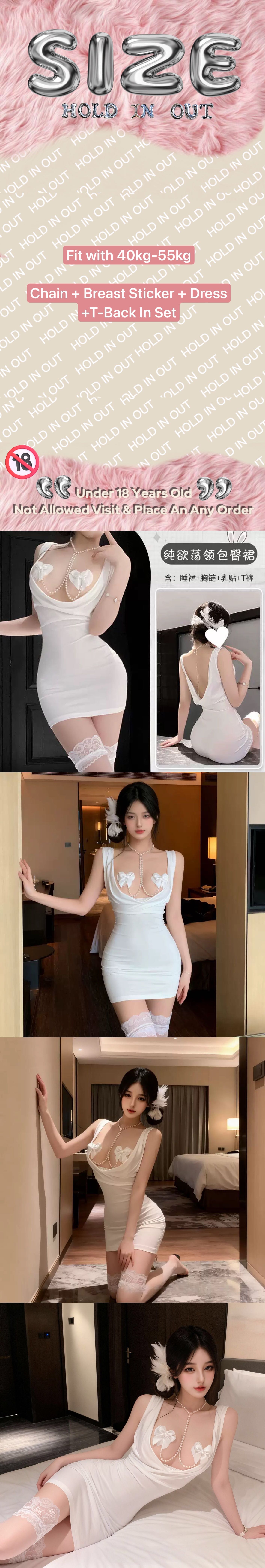 【Preorder】40kg-55kg Ribbon Chain White Dress+T-Back
