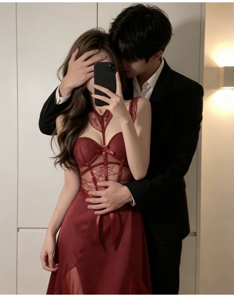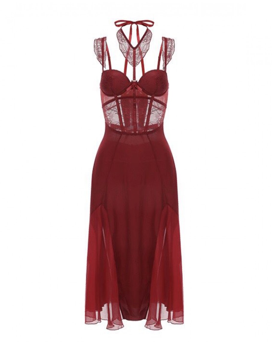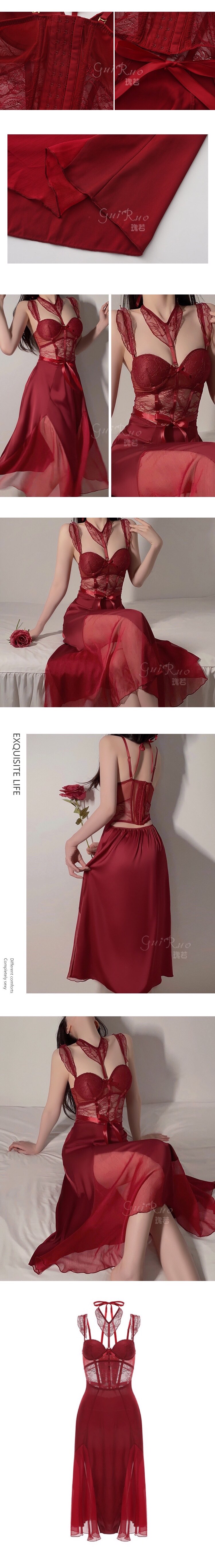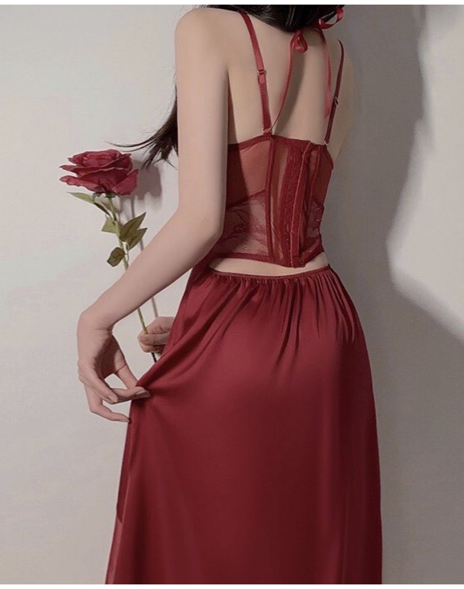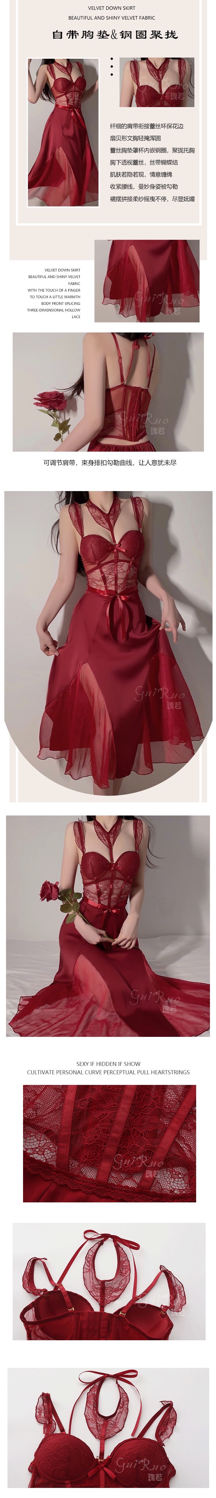 【Preorder】40kg-65kg Underwire Pads Maroon Home Dress