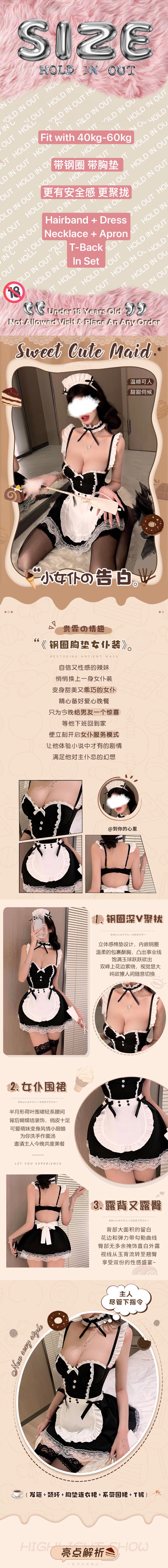 【Preorder】40kg-60kg Pads Underwire Cos Maid Sexy Lingeries Dress