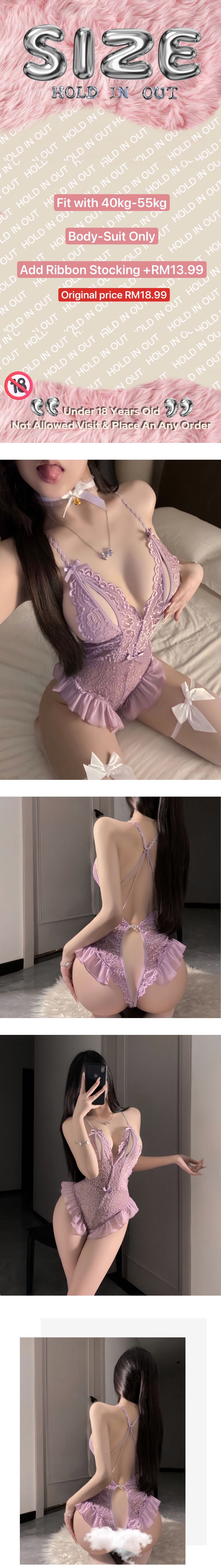 【Preorder】40kg-55kg Ribbon Cut-Out Lace Body-Suit
