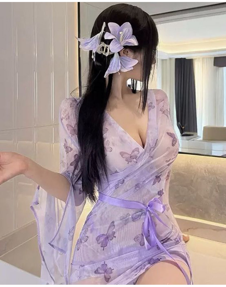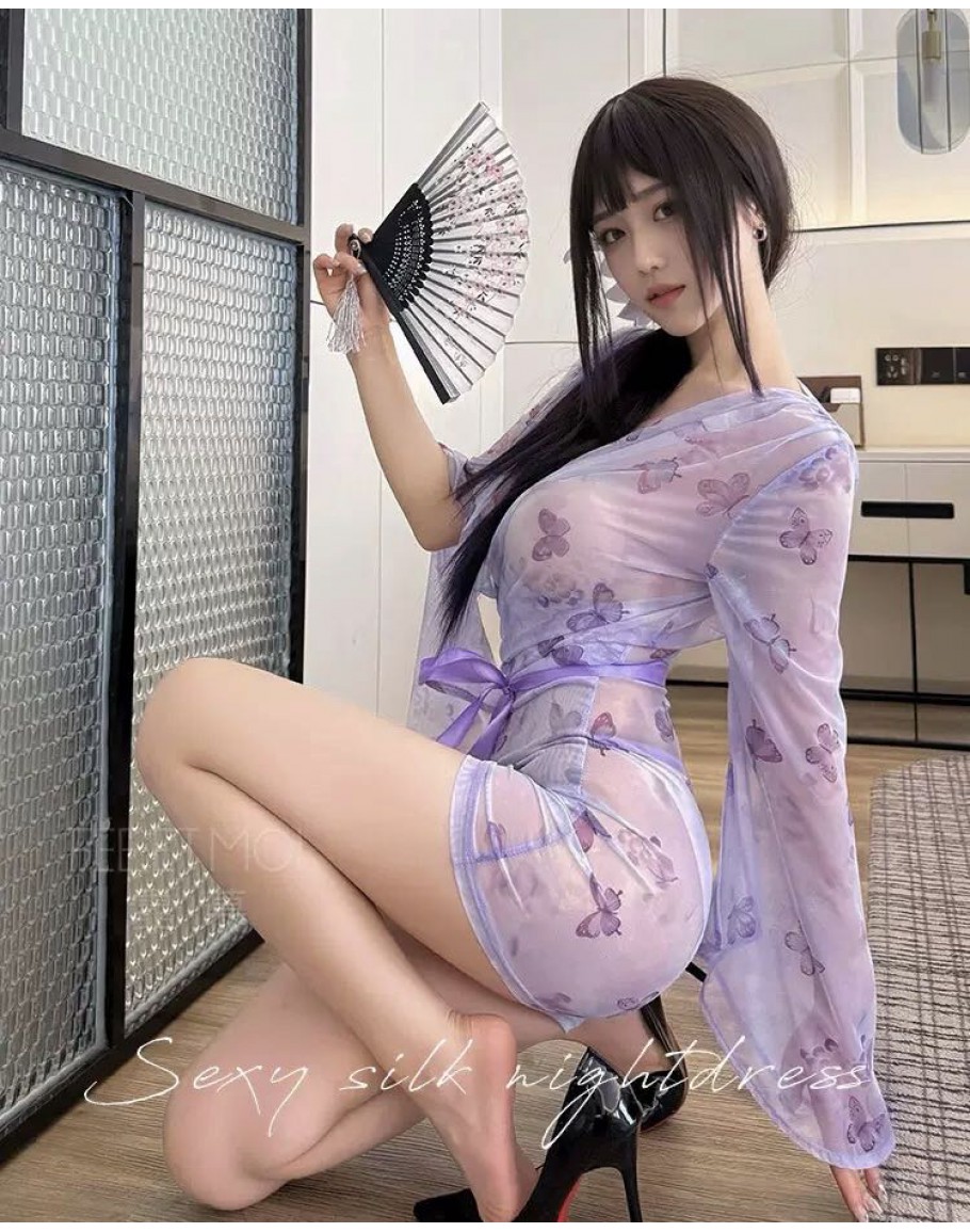 【Preorder】40kg-55kg Thin Kimono Backless Pajamas Set