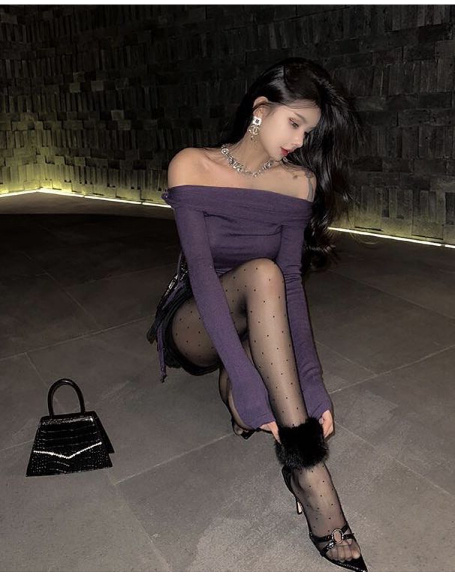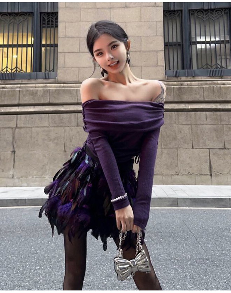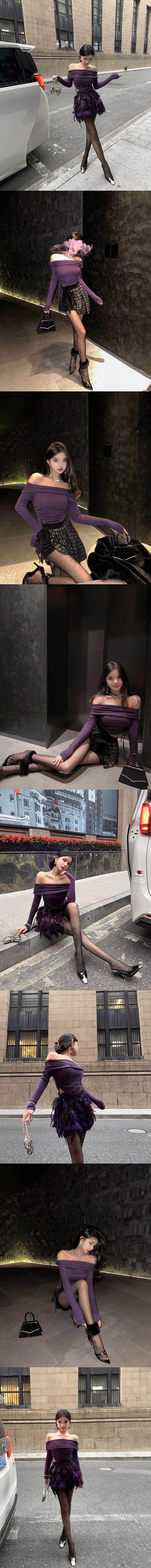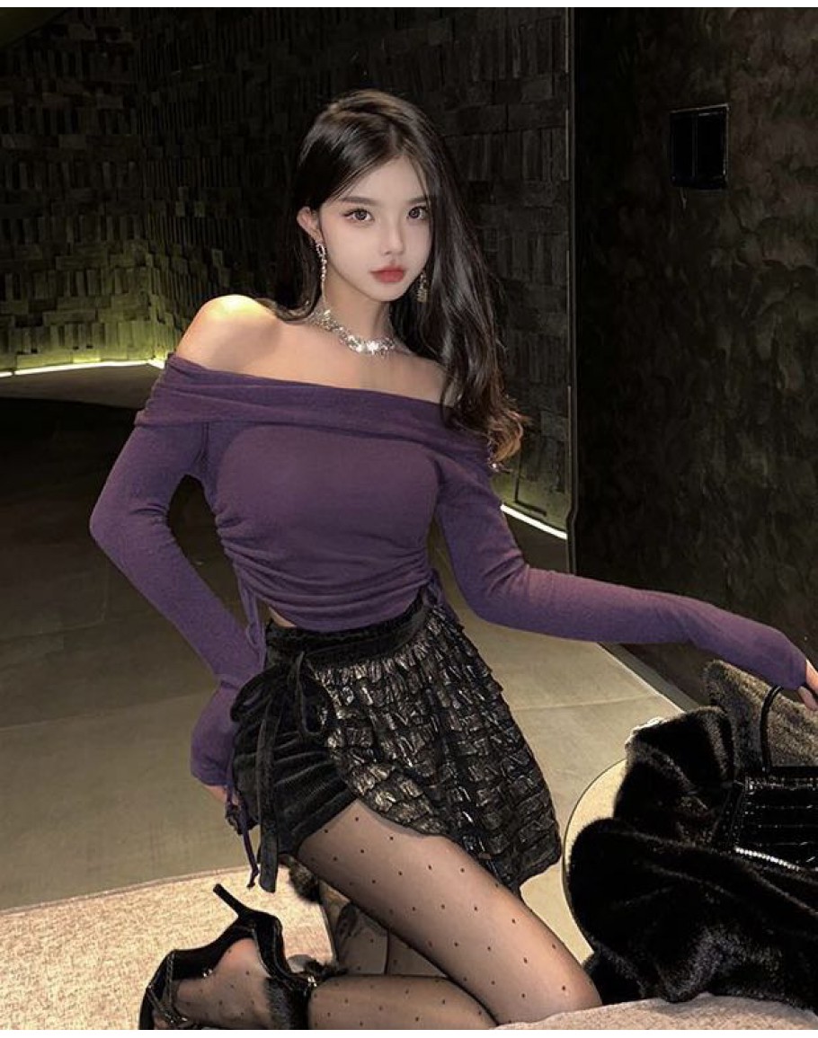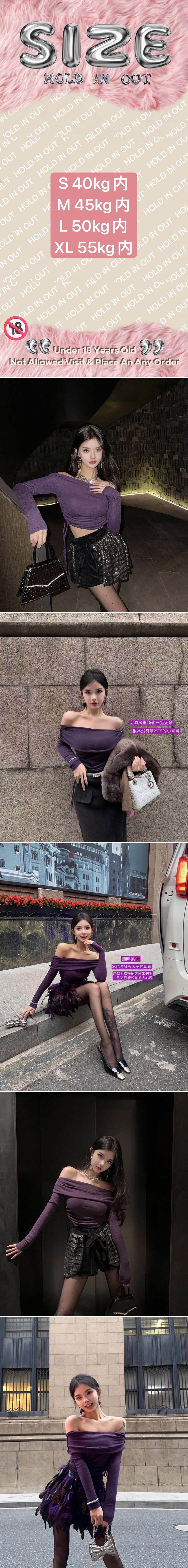 【Preorder】40kg-55kg Off-The-Shoulder Purple Short Tops