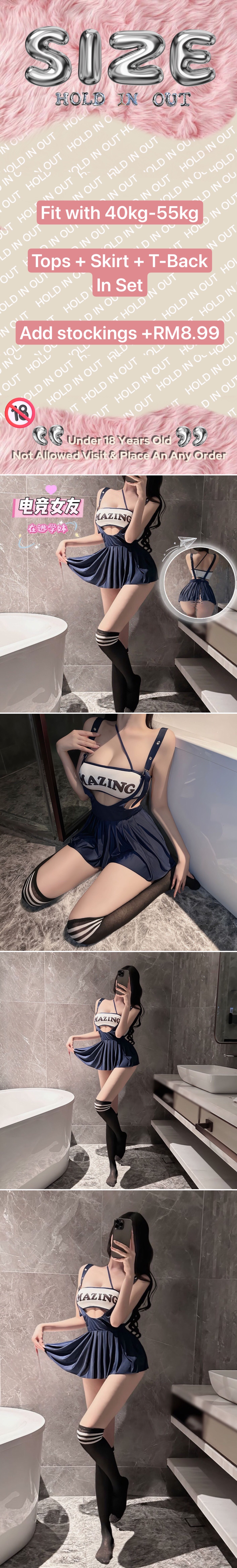 【Preorder】40kg-55kg White Tops With Navy Skirt Sexy Lingeries