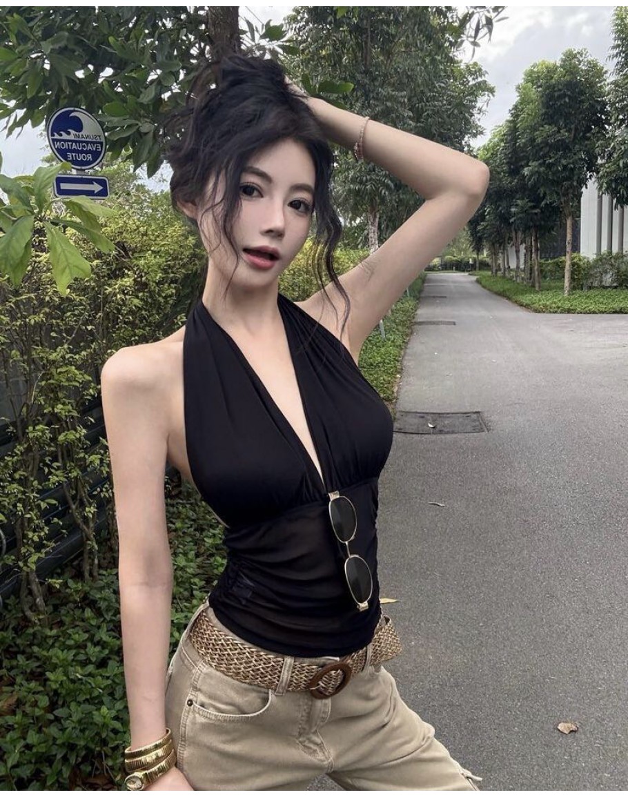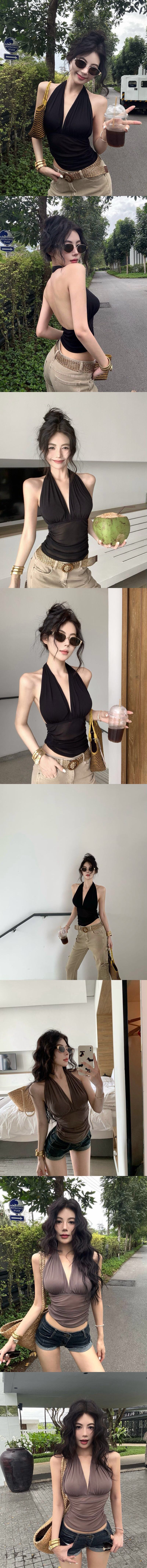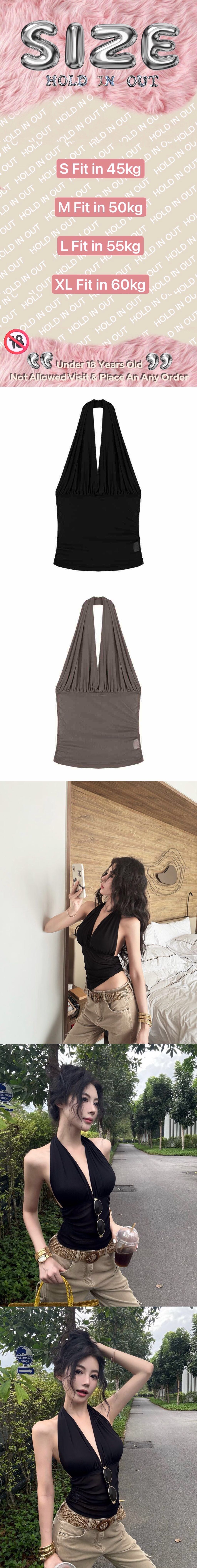 【Preorder】40kg-60kg V-Neck Thin Halter-Neck Short Tops