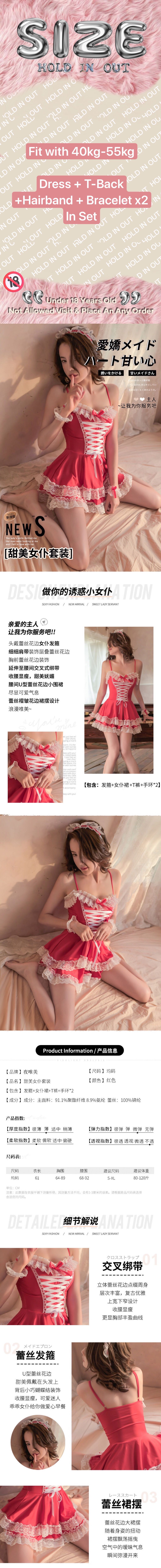 【Preorder】40kg-55kg Christmas Red Cos Maid Dress Set