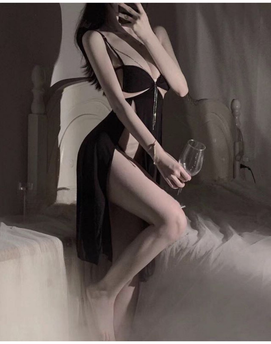 【Preorder】40kg-55kg Rhinestone Backless Black Dress