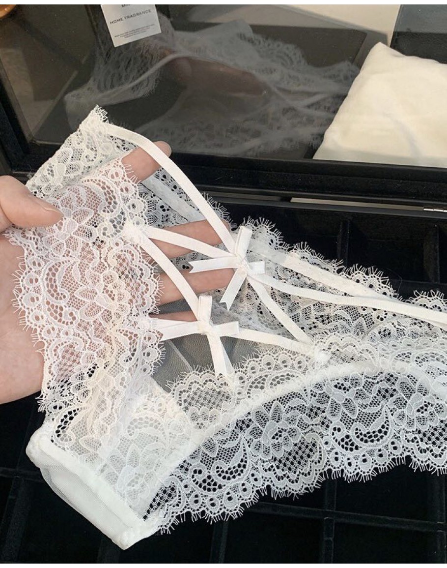 【Preorder】40kg-60kg Cut-Out Thin Lace Ribbon Panties