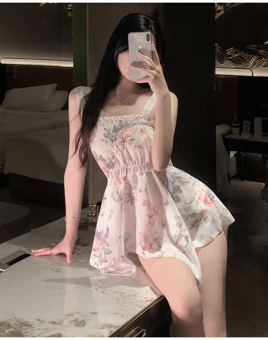 【Preorder】40kg-55kg Flora Patterned Asymmetrical Pajamas Dress