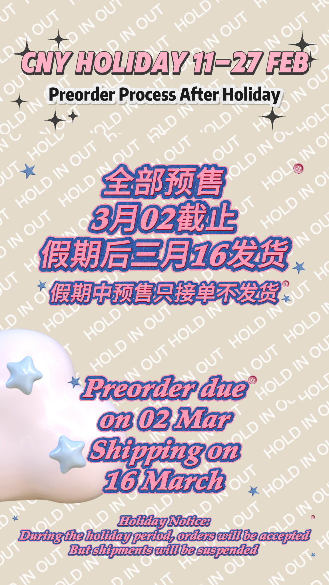 【PREORDER】CNY HOLIDAY NOW, ORDER PROCESS AFTER HOLIDAY.