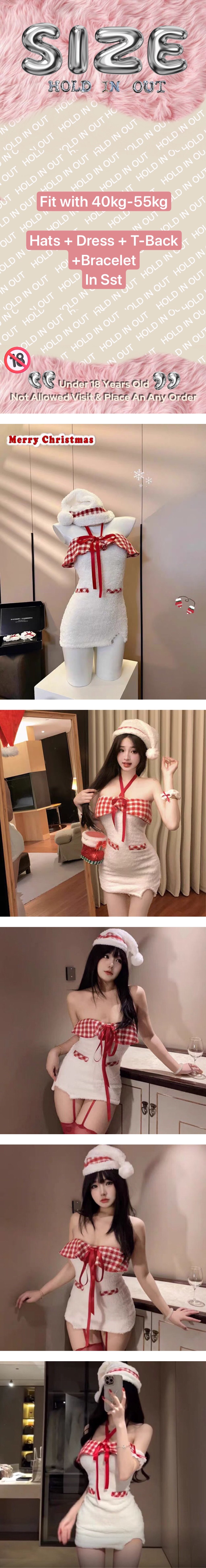 【Preorder】40kg-55kg Christmas Limit Velvet Hats+ Dress In Set