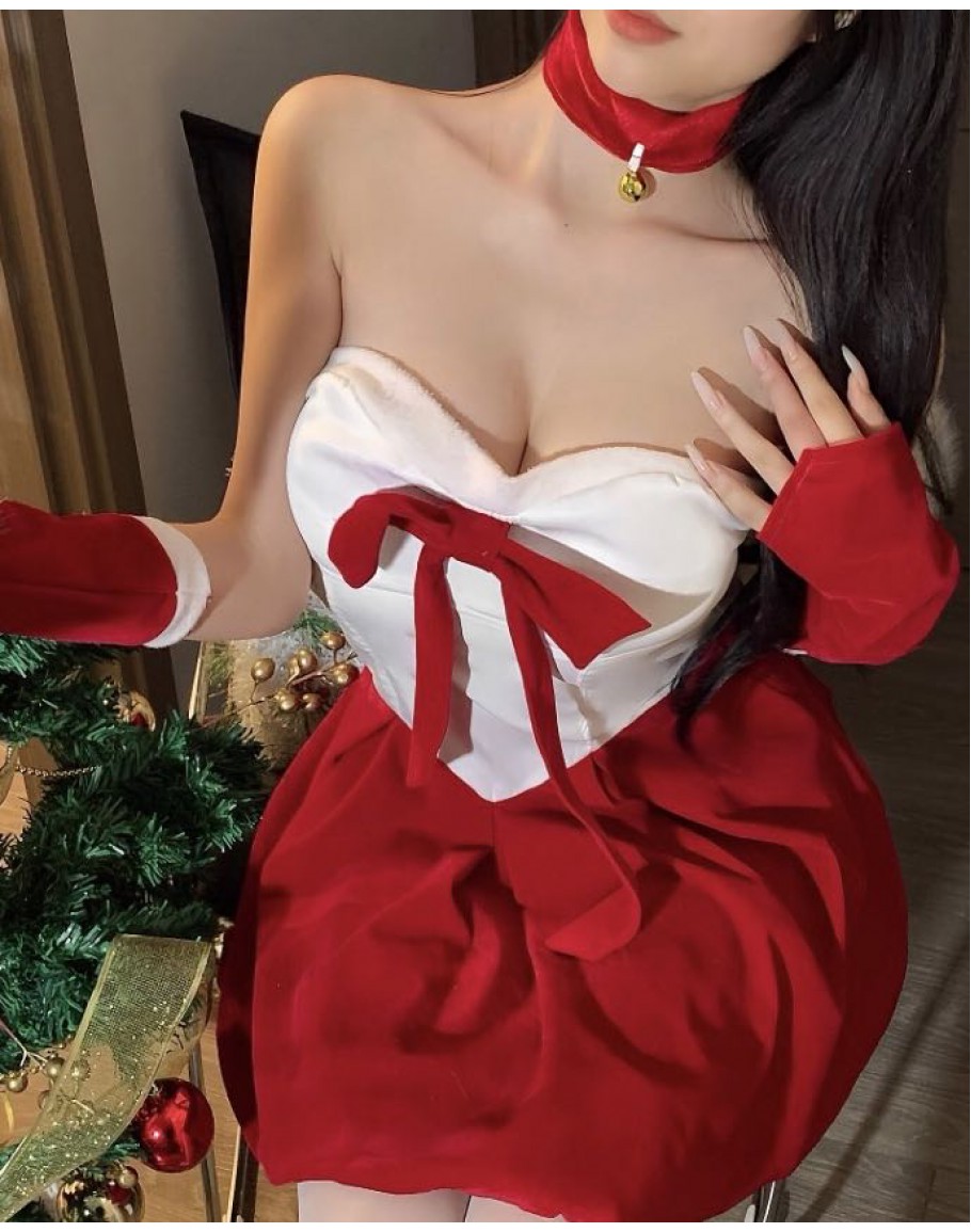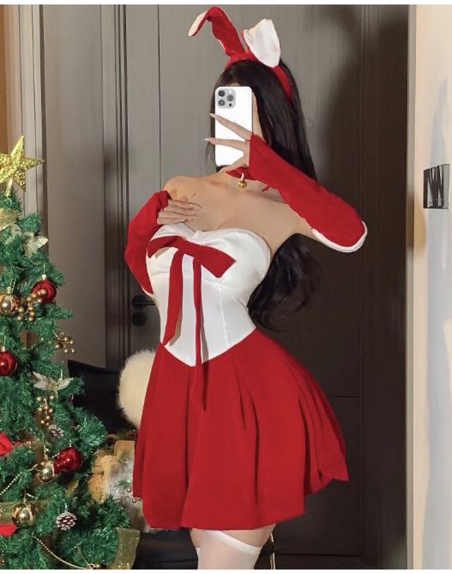 【Preorder】40kg-55kg Christmas Rabbit Velvet Dress Set