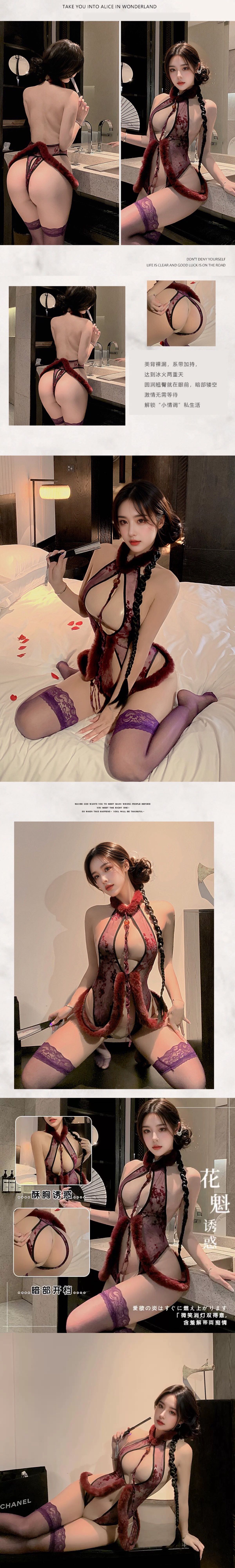 【Preorder】40kg-55kg Velvet Halter-Neck Body-Suit Sexy Lingeries