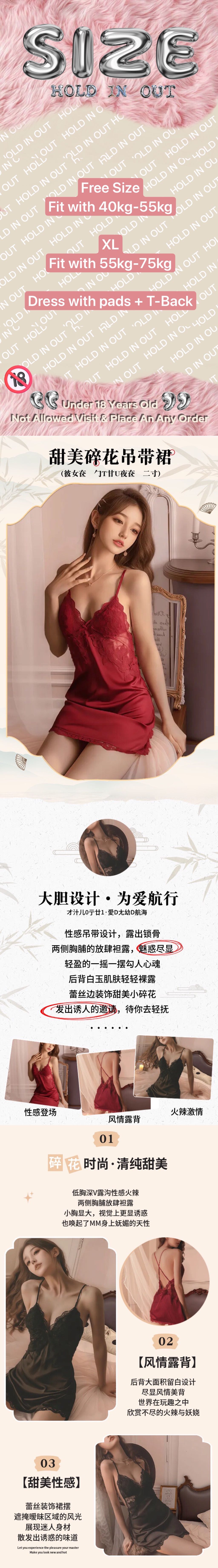 【Preorder】40kg-75kg Lace Pads Backless Dress+ T-Back
