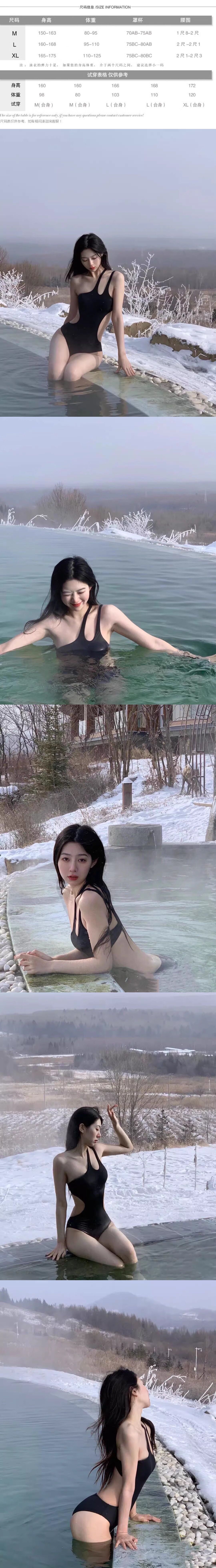 【Preorder】40kg-60kg Pads Asymmetrical Black Swimwear