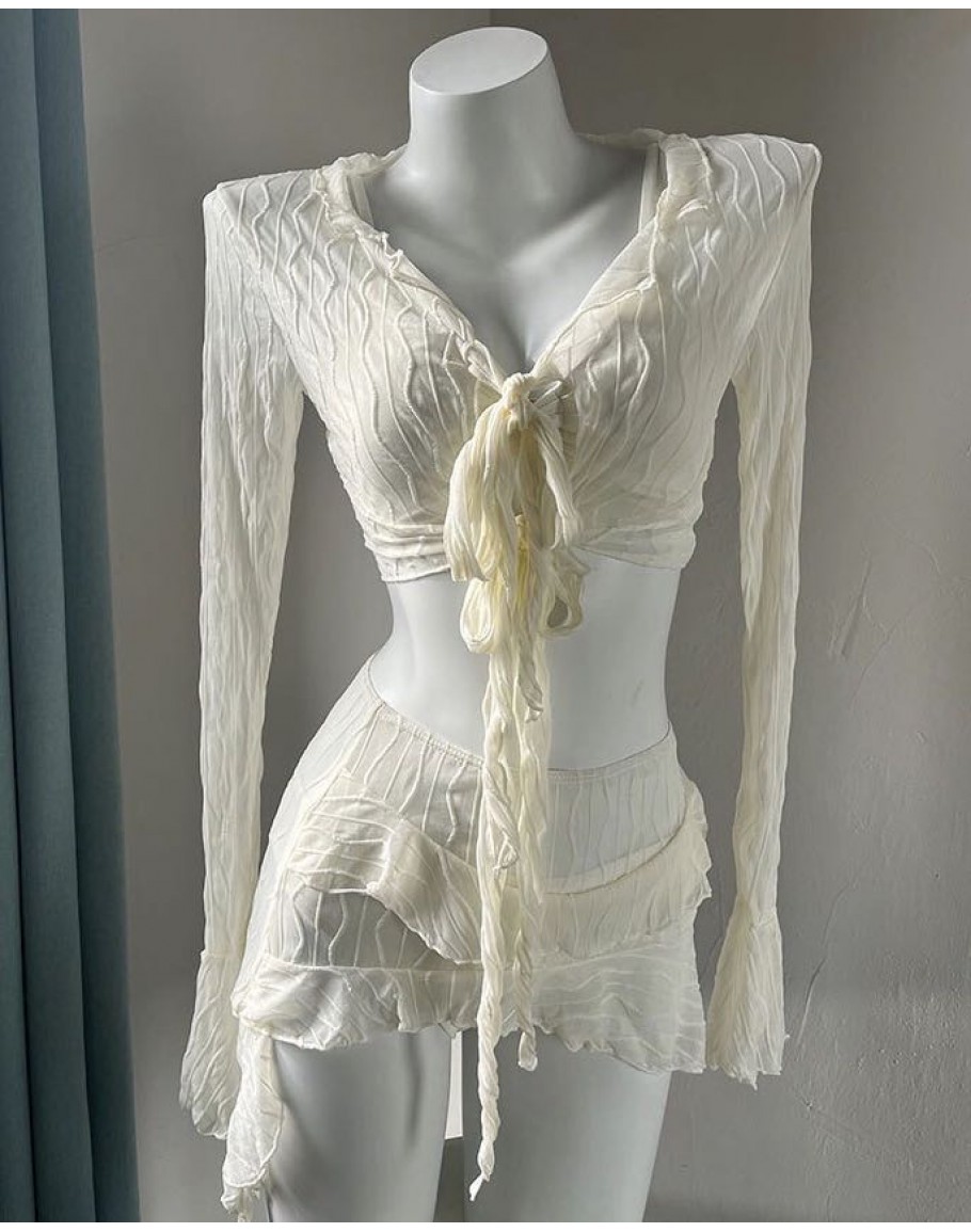【Preorder】40kg-65kg Cream Pads Bikini + Tops+ Skirt Swimwear